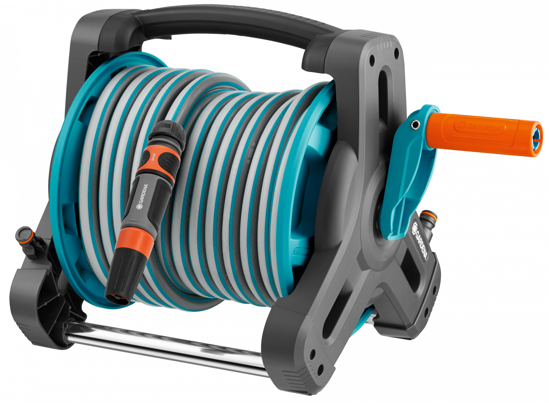 Kompakt kialakításának és lehajtható tekerőkarjának köszönhetően a tömlőtartó ügyesen, helytakarékosan tárolható. A terasz vagy erkély legkisebb szegletében is elfér.