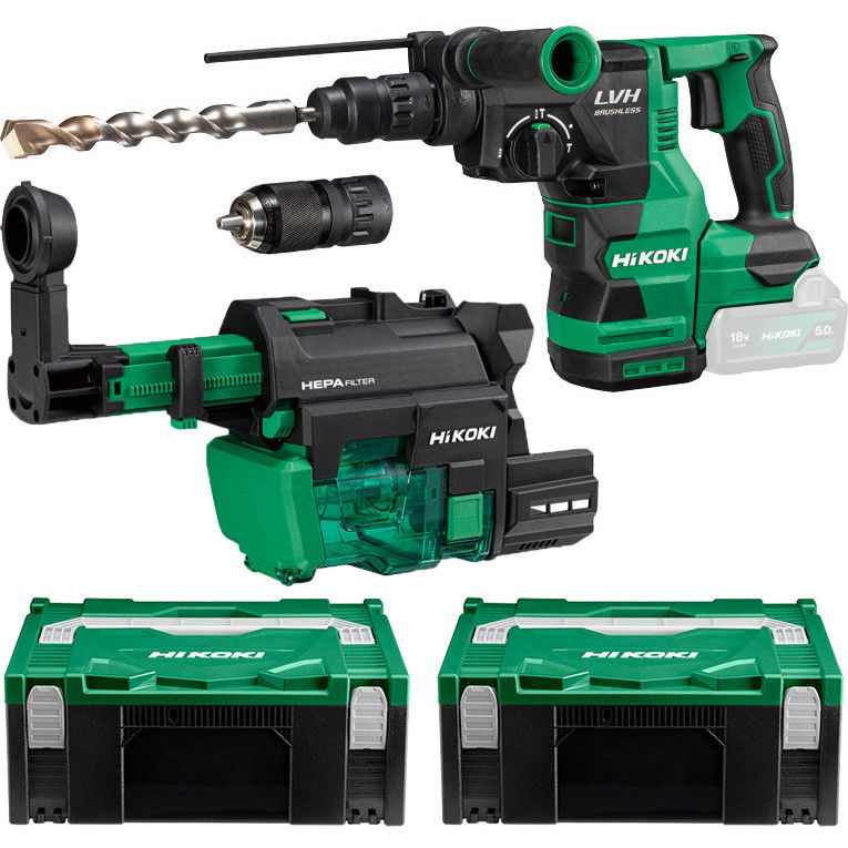 HiKoki DH1826DC-W3Z akkus SDS-plus fúró-vésőkalapács porelszívóval (akku és töltő nélkül, 2 db Hitbox kofferrel)