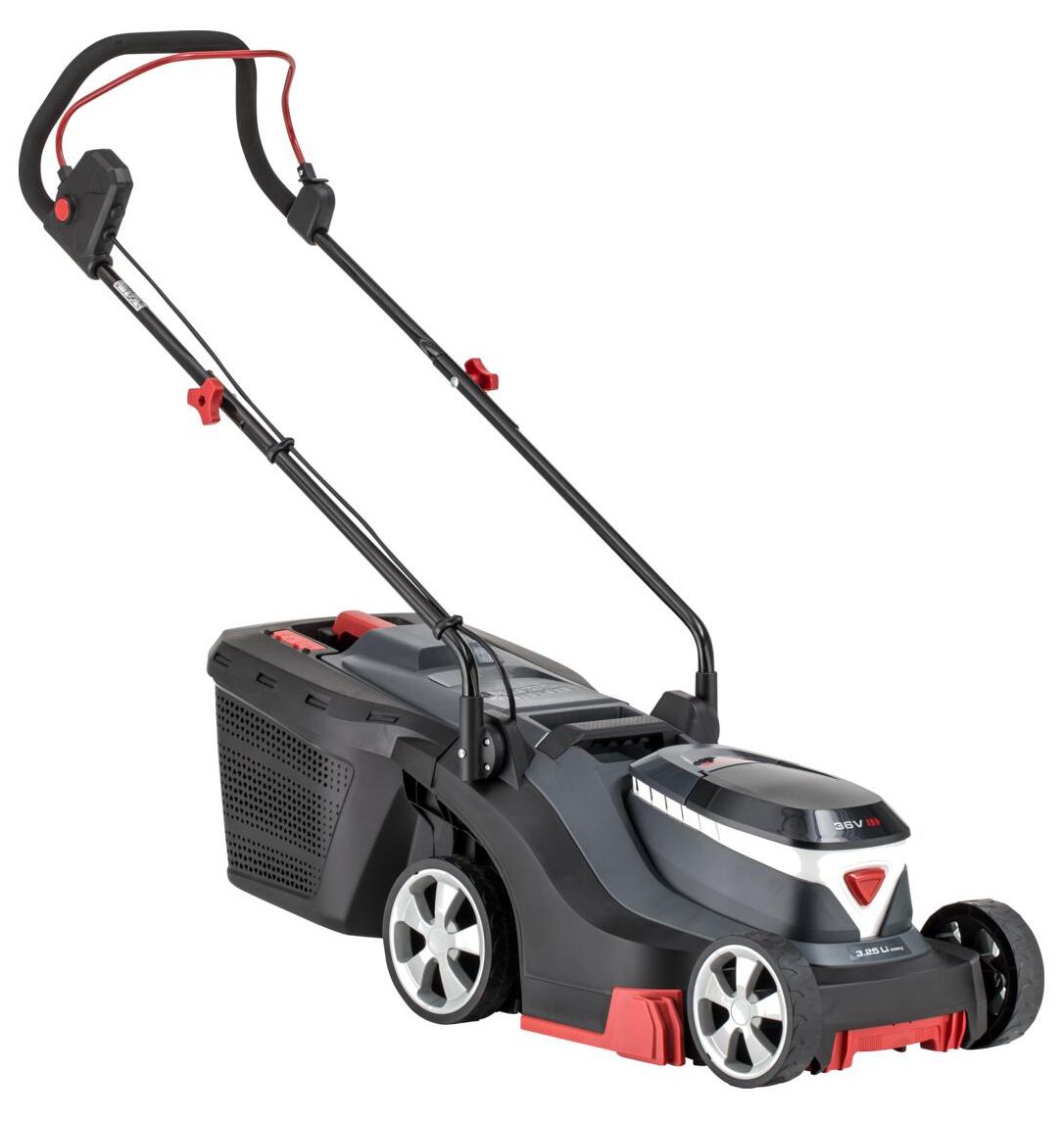 - Erőteljes 36 V-os fűnyíró.
