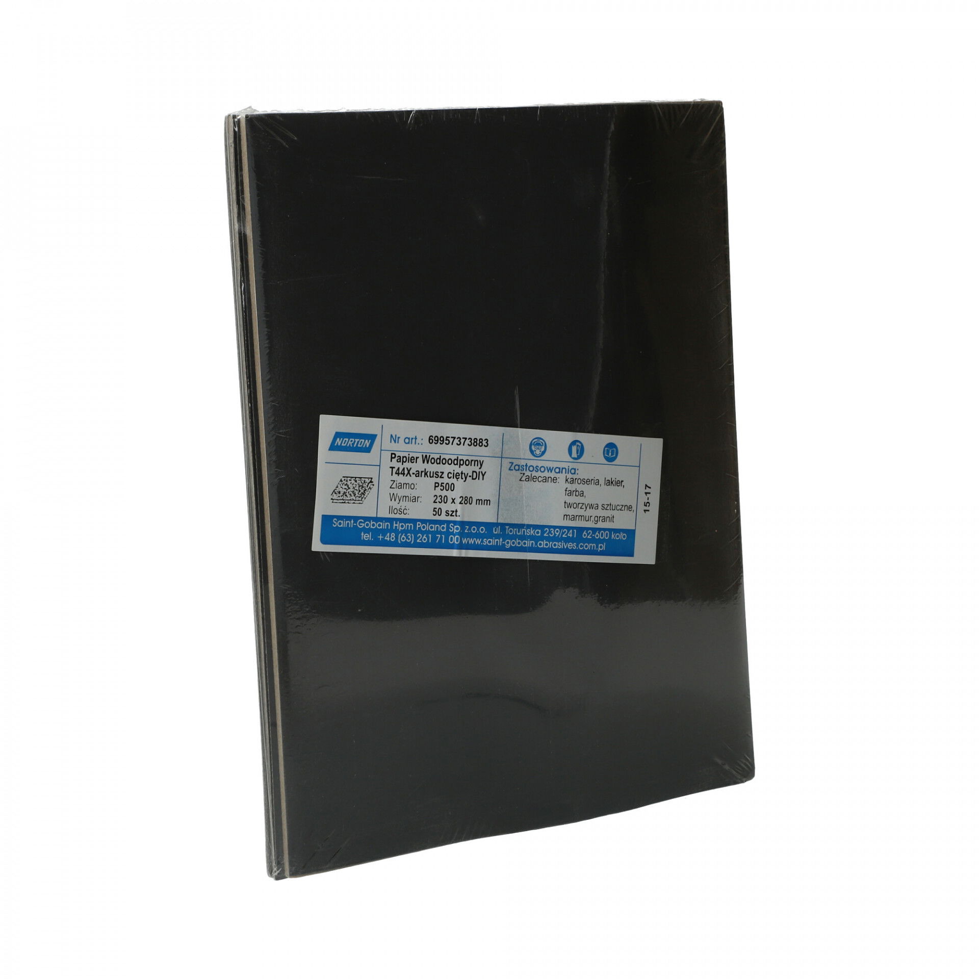 A Norton T44X vízálló csiszolópapír nagy teljesítményű szilíciumkarbid szemcsével nedves vagy száraz használatra alkalmas, nedves használat esetén tisztább felületet biztosít csiszolás közben. Gyors anyageltávolítás és simább és fényesebb felület elérése, ideális lakkozott felületeken való használatra és fémekhez. Festék- és lakkburkolatok, műanyagok, vas- és színesfémek csiszolására, polírozására is szolgál. Használható önmagában, csiszolótömbbel, kapcsos rögzítésű elektromos vagy akkumulátoros csiszológéppel.